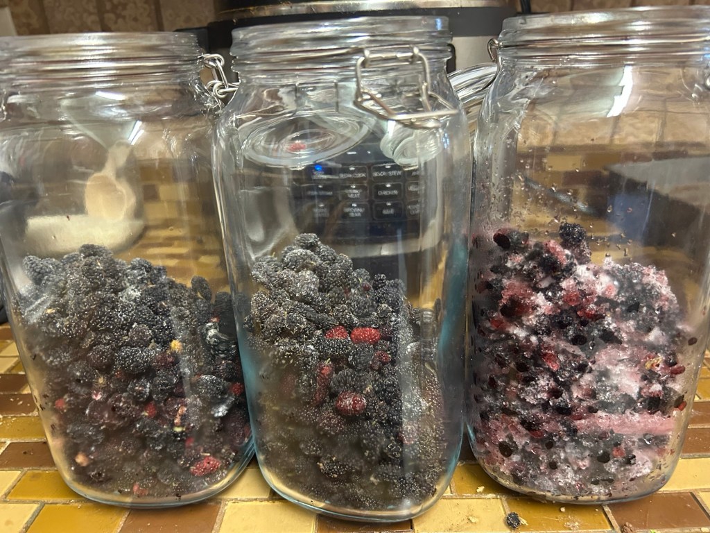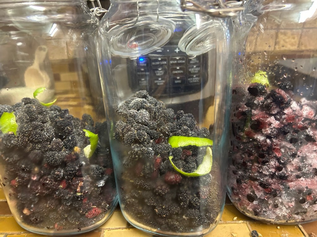What do you do when you have two mulberry trees and they’re coming in by the pound? You make liqueur!
