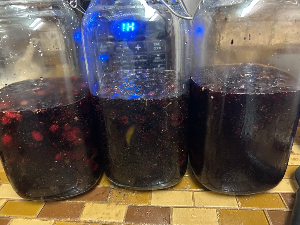 When they’re done, I’ll add simple syrup to each and bottle them.